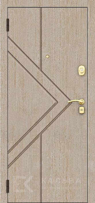 Фото «Железная дверь светлый дуб с диагональным рисунком и панелью орех №105»